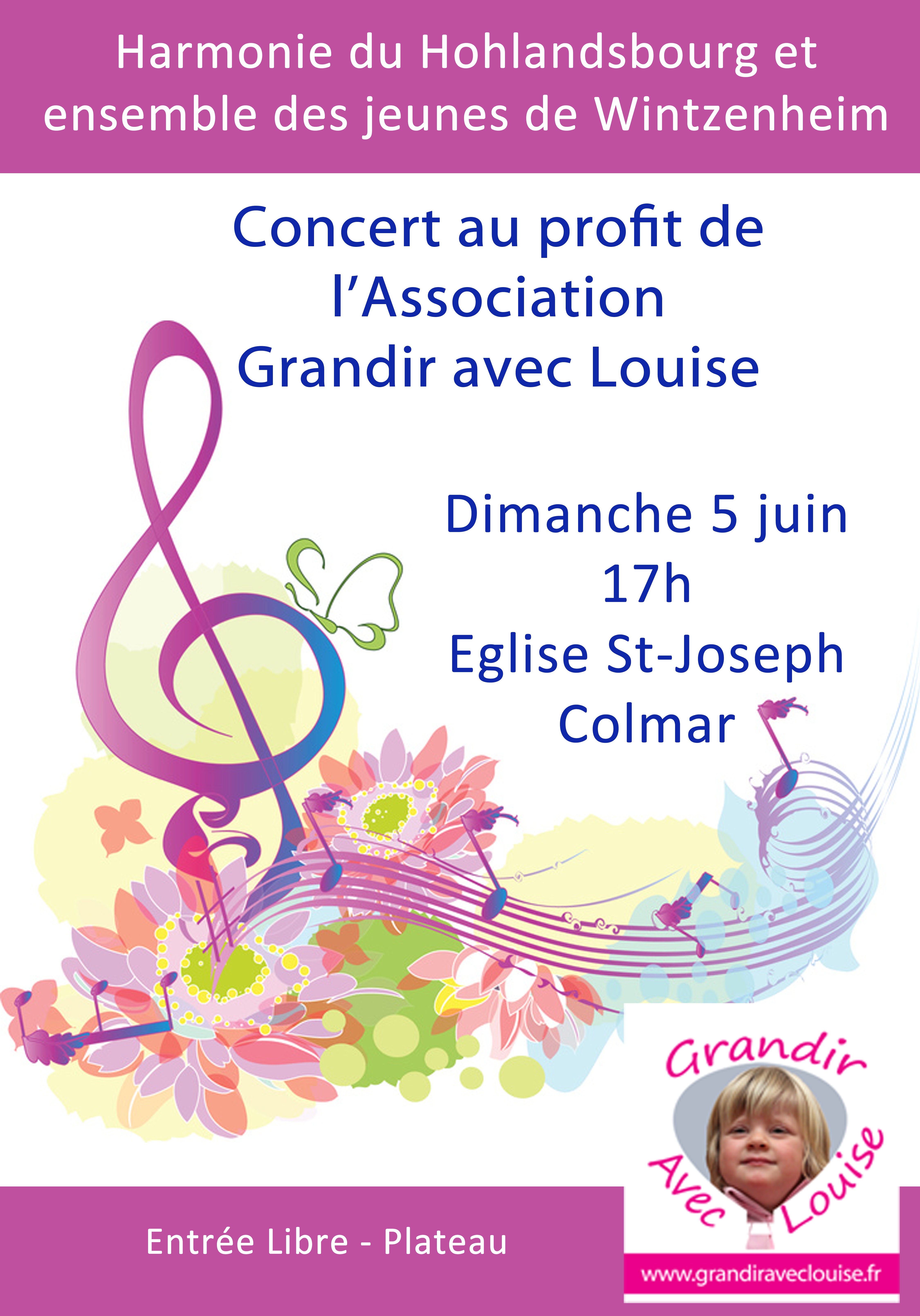 Dimanche 5 juin aura lieu en l’église Saint Joseph à Colmar à 17h00 un concert au profit de l’association « Grandir avec Louise ».